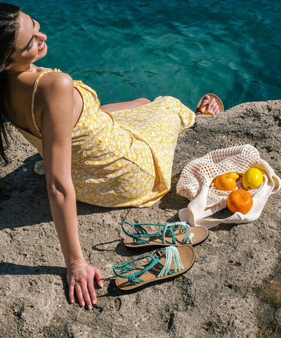 熟練の技術を誇る職人が心を込めて手作りしたサンダルで、いつものスタイルがより特別に。ミントとぺトロールの緑鮮やかな配色のSoulmateサンダルを身に着けて、爽やかな海風を感じませんか。