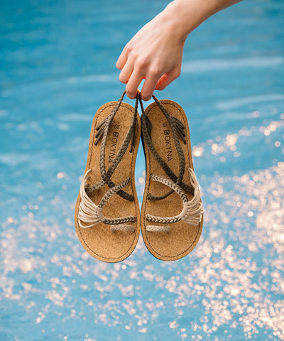 BokynaのSoulmateサンダルを身に着けると、どんな季節でもビーチの雰囲気がすぐそばに。太陽の光をたっぷり浴びた砂を彷彿させる配色と、ダークコルクのソールが特徴。ニュートラルカラーの絶妙な組み合わせで、海辺の風まで感じられる気分に。