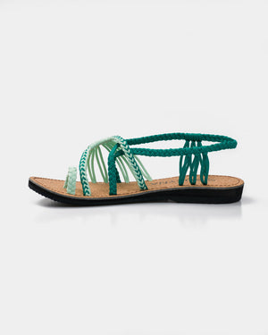 熟練の技術を誇る職人が心を込めて手作りしたサンダルで、いつものスタイルがより特別に。ミントとぺトロールの緑鮮やかな配色のSoulmateサンダルを身に着けて、爽やかな海風を感じませんか。