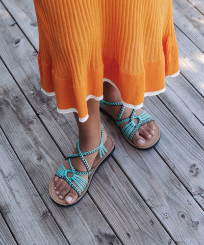 ターコイズの大胆な色使いが特徴のFreedomサンダルを身に着けて、全身全霊で楽しむ夏に。キラキラした太陽を浴びながら海岸を散歩するときも、大自然の中で森林浴するときも、Freedomサンダルがあなたの夏を特別に演出します。