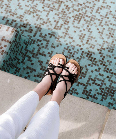ブラックを差し色に選ぶだけで、どんなスタイルも洗練された印象に。Bokynaサンダルは一日を通して大活躍。日中のオフィス用にはシックなブレザーとカジュアルなジーンズに合わせて。夜のお出かけには特別なドレスを引き立てるディテールとして。週末のピクニックにも最適です。