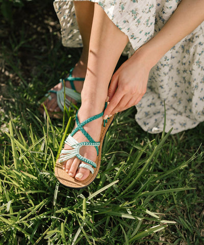 熟練の技術を誇る職人が心を込めて手作りしたサンダルで、いつものスタイルがより特別に。ミントとぺトロールの緑鮮やかな配色のSoulmateサンダルを身に着けて、爽やかな海風を感じませんか。